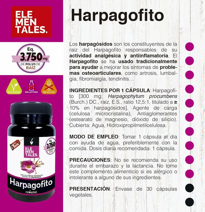 Нутрикосметика Novadiet Harpagofito — это эффективное средство для поддержания здоровья суставов и улучшения их функциональности. В каждой упаковке содержится 30 капсул, которые обеспечивают ваш организм необходимыми активными компонентами.