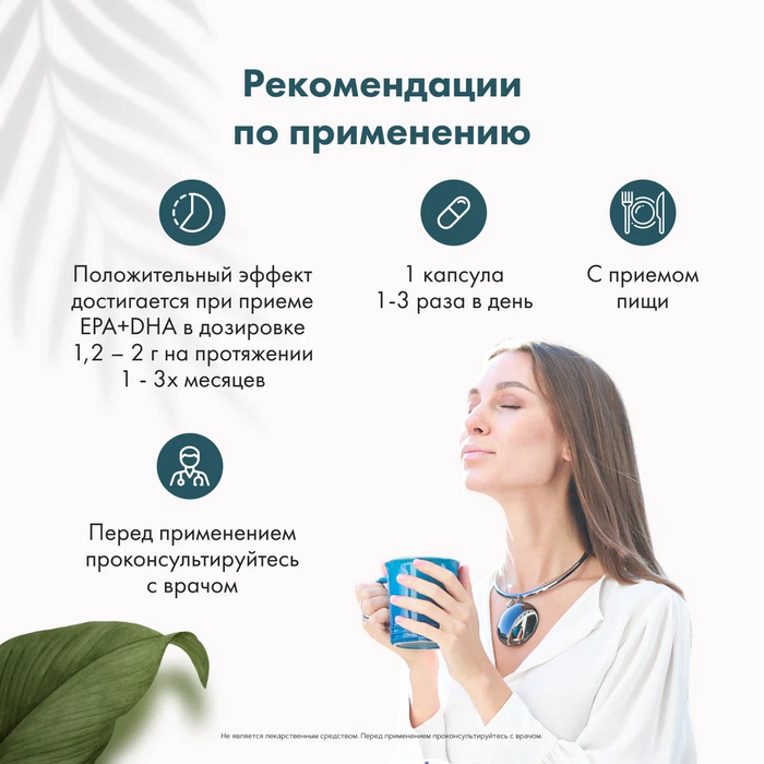 Капсулы Омега-3 легко проглатываются и не имеют неприятного послевкусия. Продукт подходит для людей, ведущих активный образ жизни, и может быть полезен в качестве дополнения к сбалансированному питанию.