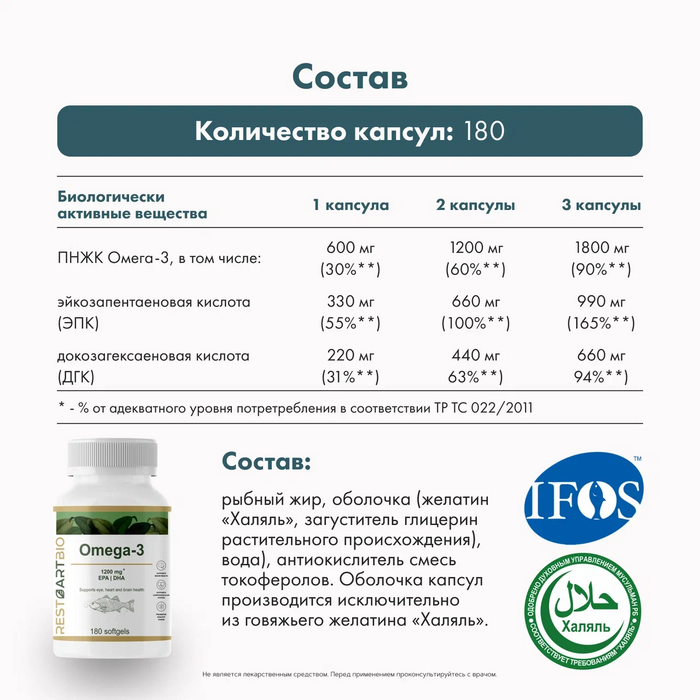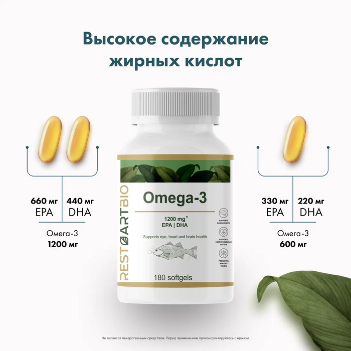 RestartBio Омега-3 (1200 мг), 180 капсул