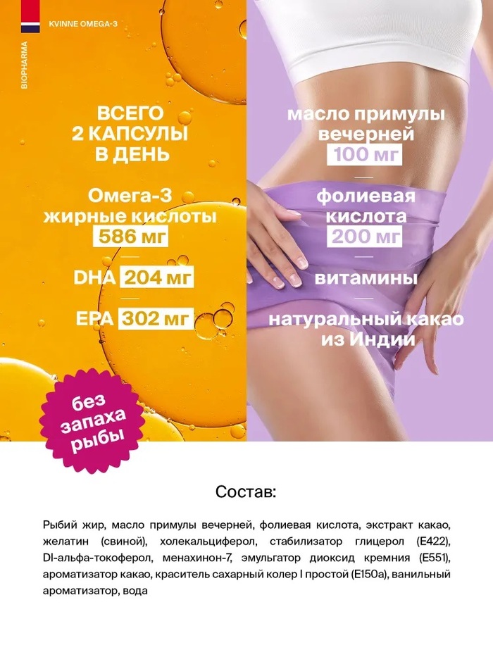 • Противовоспалительное действие: Омега-3 обладает противовоспалительными свойствами, что может помочь в снижении воспалительных процессов в организме.