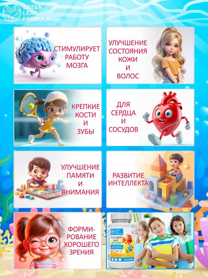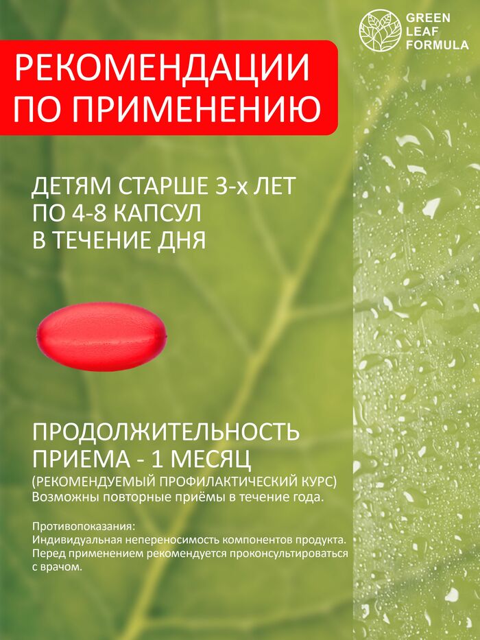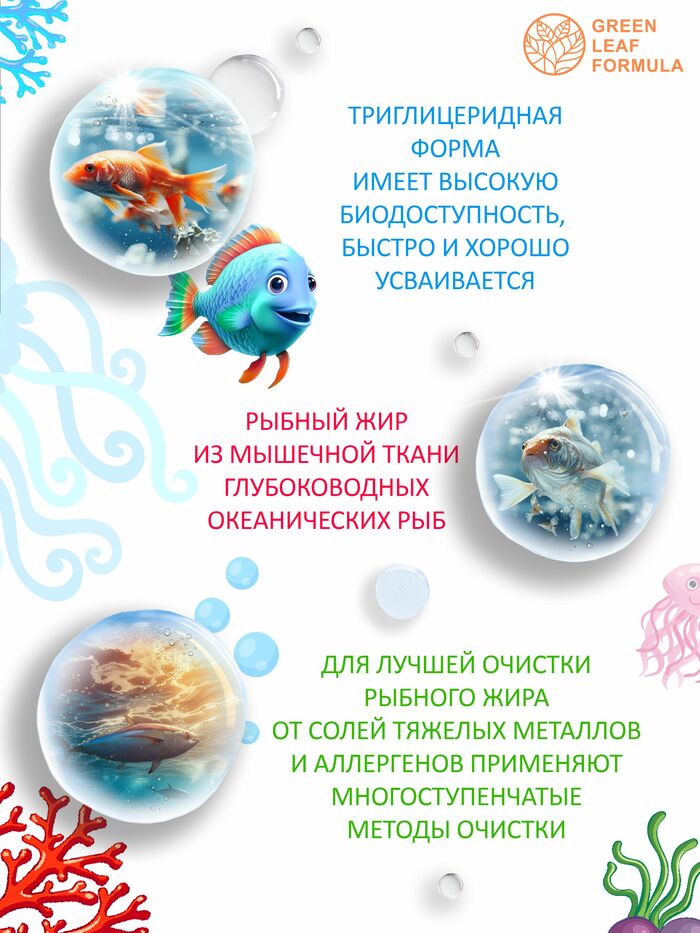 Жевательные капсулы Омега 3 от бренда GREEN LEAF FORMULA имеют художественную форму и приятный клубничный вкус, что делает их особенно привлекательными для детей. Комплекс подходит для использования в периоды простудных заболеваний, при умственных и физических нагрузках, а также при несбалансированном питании.