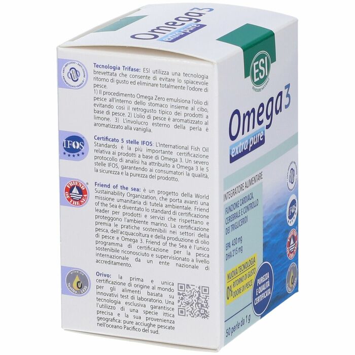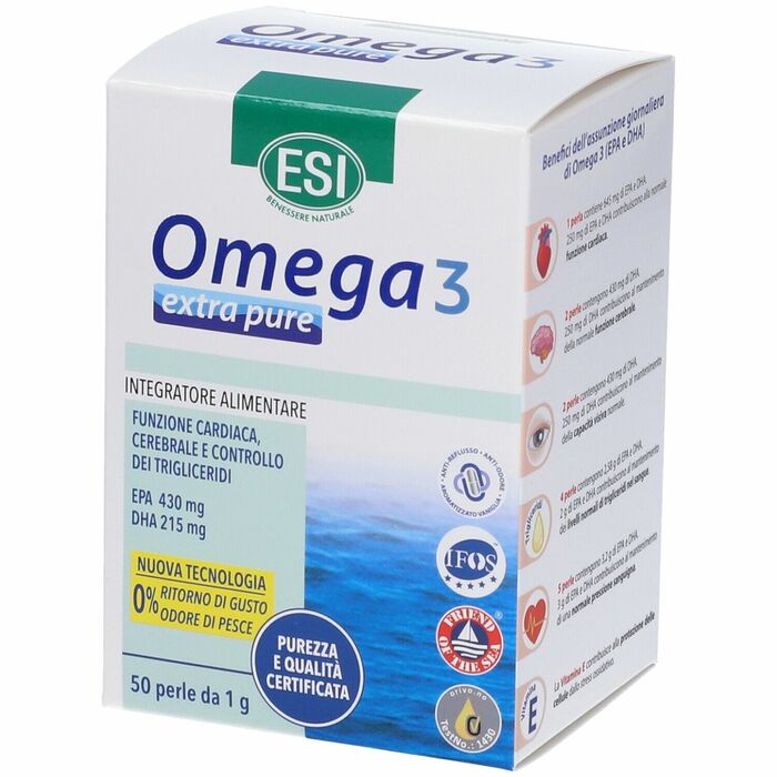Омега-3 "Экстра чистый" от Esi Srl — это высококачественная добавка, содержащая 50 жемчужин, которые обеспечивают организм необходимыми жирными кислотами. Этот продукт идеально подходит для поддержания здоровья сердца и сосудов.