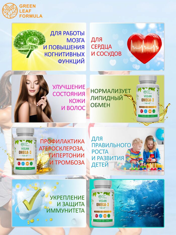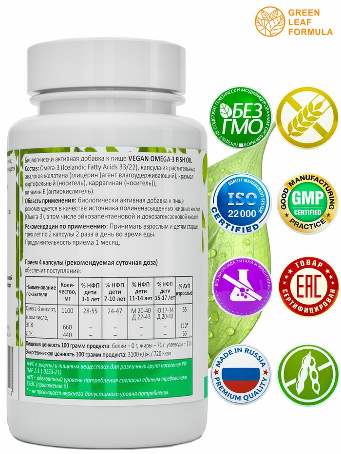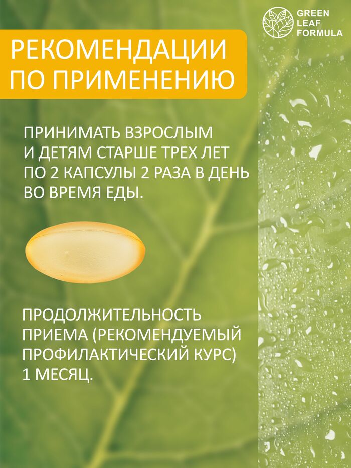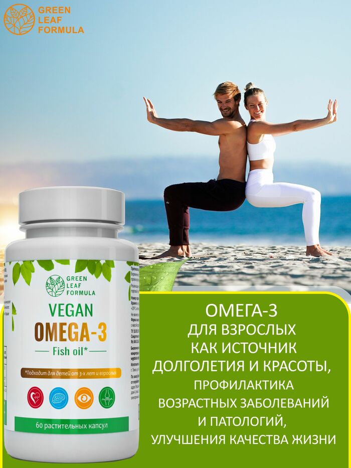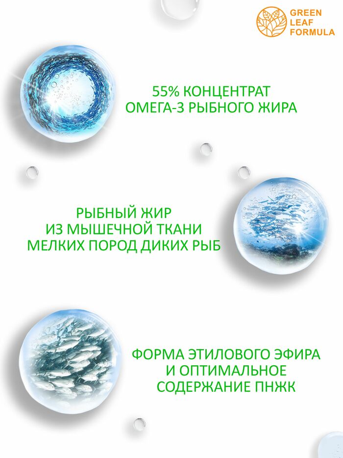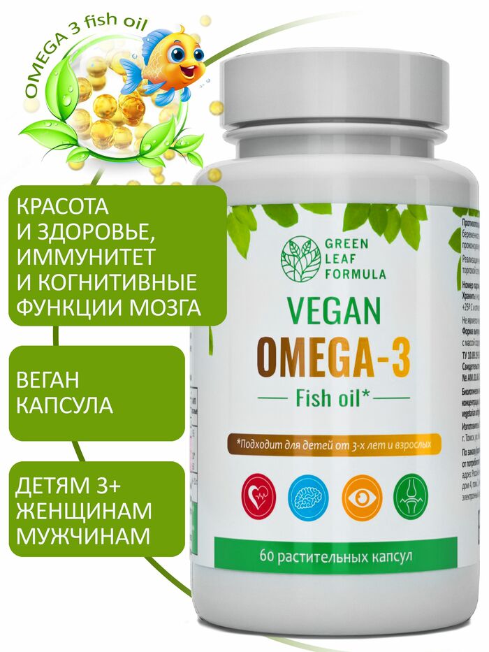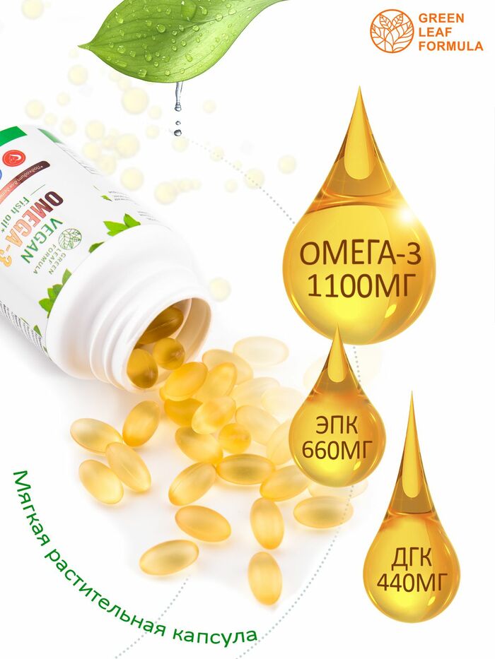 Омега 3 от бренда GREEN LEAF FORMULA — это высококачественная добавка, содержащая полезные жирные кислоты, которые необходимы для поддержания здоровья организма. В каждой упаковке содержится 60 капсул, что обеспечивает длительный курс приема.