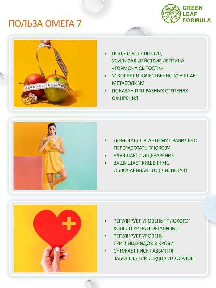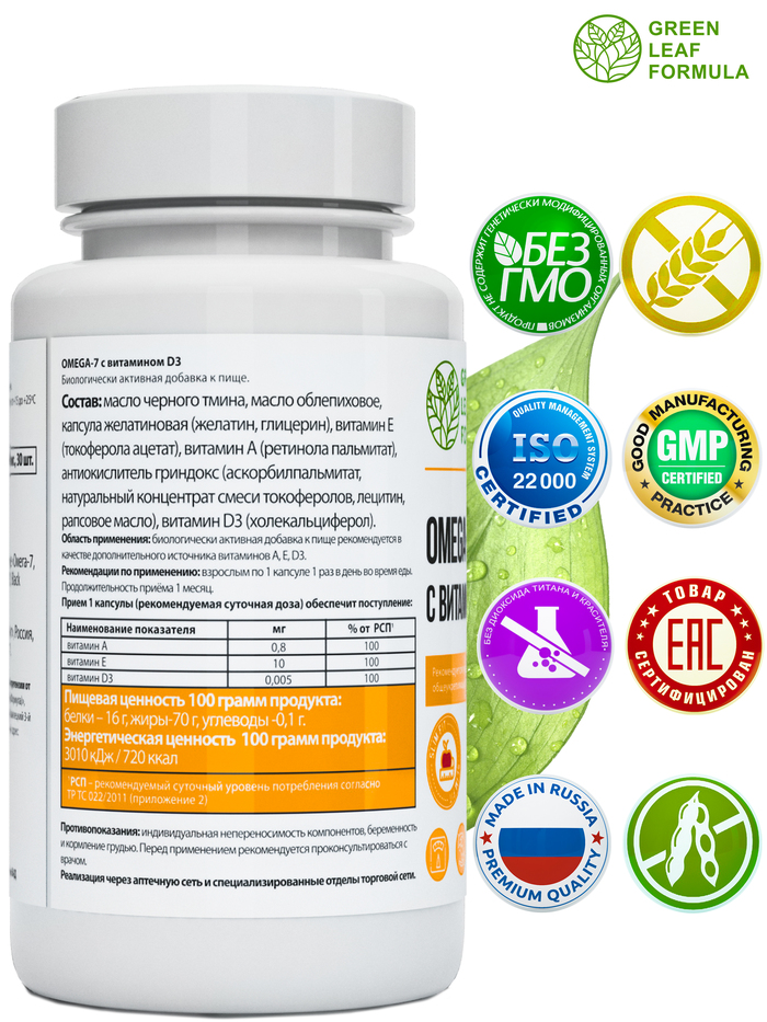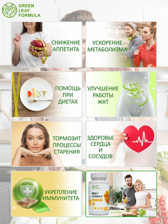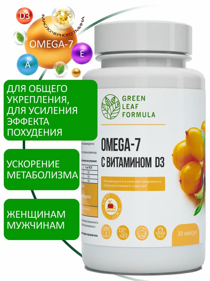 Омега-7 Витаминный комплекс для снижения веса от бренда GREEN LEAF FORMULA — это эффективное решение для тех, кто стремится контролировать свой вес. В каждой упаковке содержится 30 капсул, которые помогут вам достичь ваших целей в похудении.