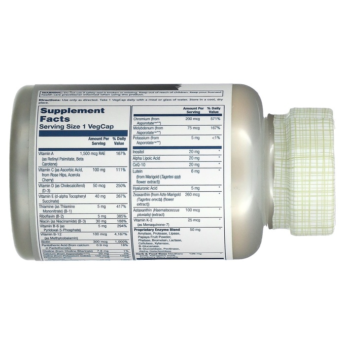 Мультивитамины для взрослых старше 50 лет от Solaray содержат эффективные, выращенные на солнце питательные продукты. В их состав входят растительные компоненты женьшеня и астрагала (Astragalus) для заряда энергии, коэнзим Q10, поддерживающий антиоксидантную активность, витамины D3 и K2, способствующие здоровью сердца, лютеин и зеаксантин для здоровья глаз, а также запатентованная смесь ферментов для улучшения пищеварения. Поскольку мы стремимся к созданию улучшенных формул для максимальной эффективности, наши мультивитамины для взрослых старше 50 лет содержат минералы в хелатной форме, предназначенные для улучшения усвоения и эффективного использования организмом.