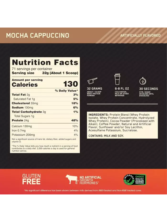 - GOLD STANDARD® — золотой стандарт качества протеина, благодаря которому с 1998 года во всем мире восстанавливается после тренировок более 2 миллиардов любителей физических нагрузок.