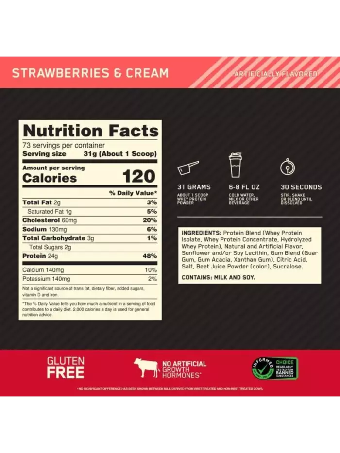 - GOLD STANDARD® — золотой стандарт качества протеина, благодаря которому с 1998 года во всем мире восстанавливается после тренировок более 2 миллиарда любителей физических нагрузок.