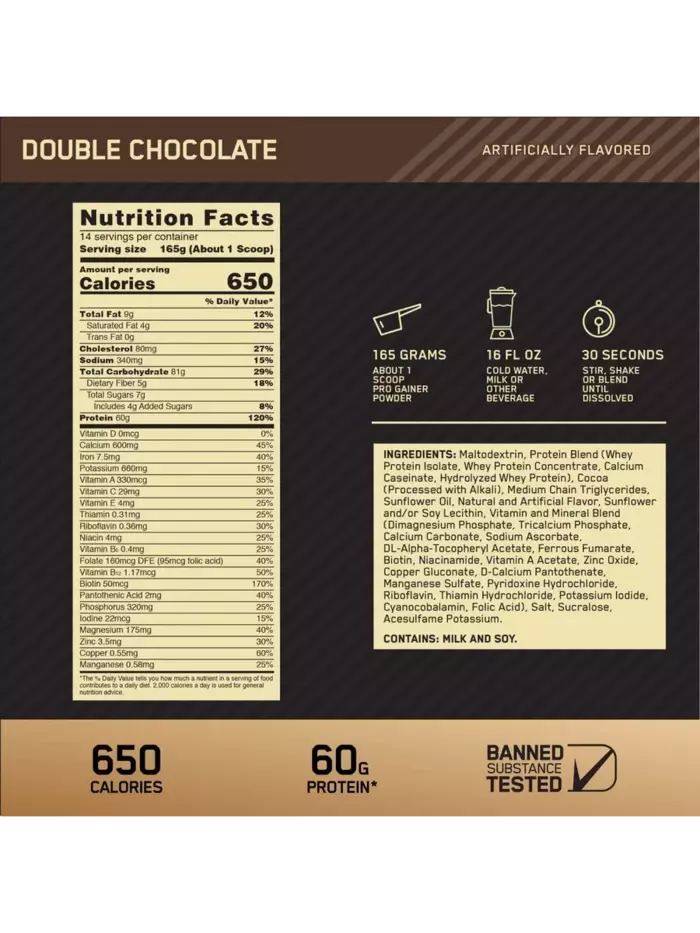 Gold Standard Pro Gainer™ — это формула с высокой концентрацией протеина и калорий, помогающая во время восстановления. Каждый коктейль содержит достаточное количество дополнительного белка, углеводов, витаминов и минералов и служит отличным дополнением к сбалансированной диете.