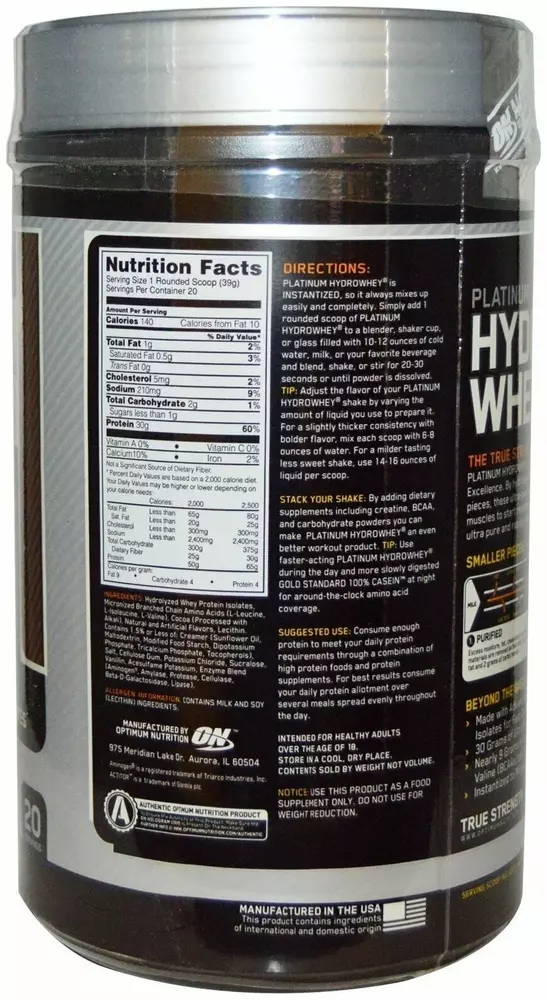 Optimum Nutrition Протеин Platinum HydroWhey Шоколад, 795 г