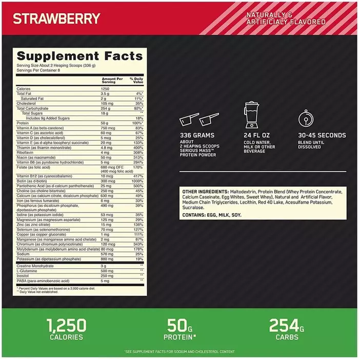 Добавка Serious Mass™ разработана для того, чтобы удобным способом получать дополнительные калории в течение дня. Поэтому она содержит значительное количество калорий, белков и углеводов.