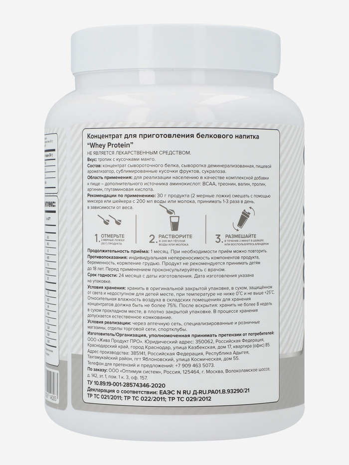 Optimum System WHEY PROTEIN Тропик с Кусочками Манго — это идеальное решение для поддержания вашего здорового образа жизни и достижения ваших фитнес-целей. Протеиновый порошок весом 900 грамм с ароматом тропиков и кусочками манго обеспечит вас необходимыми питательными веществами и подарит наслаждение от вкуса.