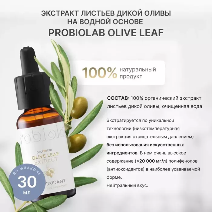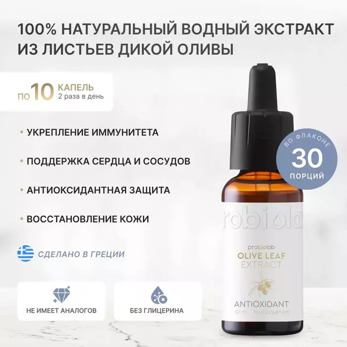 Органический экстракт листьев дикой оливы Probiolab — это натуральный продукт, созданный для поддержания здоровья и укрепления иммунной системы. Экстракт производится в Греции с использованием низкотемпературной экстракции под отрицательным давлением, что позволяет сохранить все ценные компоненты.