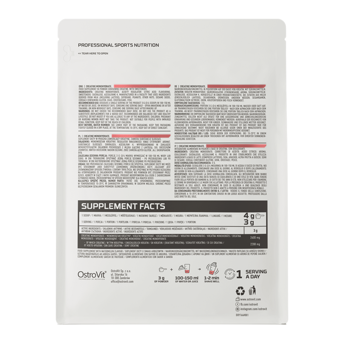 Креатин моногидрат Арбуз от бренда Ostrovit — это высококачественная добавка, предназначенная для улучшения спортивных результатов и увеличения мышечной массы. В каждой упаковке содержится 300 г креатина, который помогает повысить выносливость и силу во время тренировок.