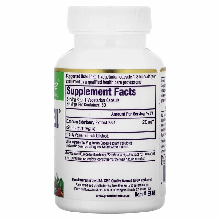 Сырье. Экстракт бузины европейской (Sambucus nigra) 50:1, содержащий полный спектр синергетических компонентов, как задумано природой. Содержит полный спектр компонентов и эквивалент 12 500 мг цельной травы.