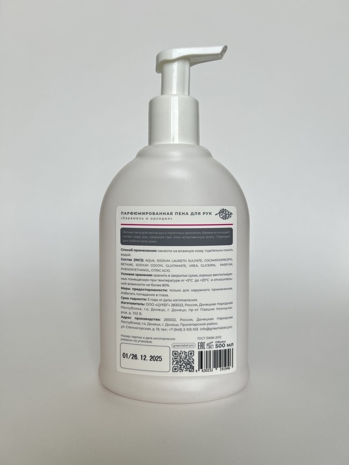 Green Label Парфюмированная пена для рук Карамель и орхидея, 500 мл