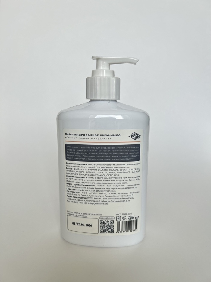 Green Label Парфюмированное крем-мыло Сочный персик и карамель, 450 мл