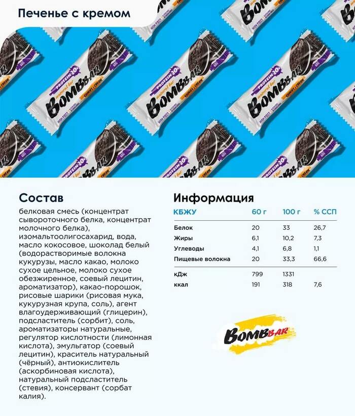Bombbar Протеиновый батончик Печенье-Крем, 60 г