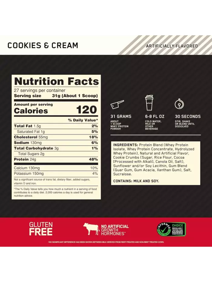 Optimum Nutrition Сывороточный протеин 100 % Whey protein Gold standard Печенье и крем, 908 г