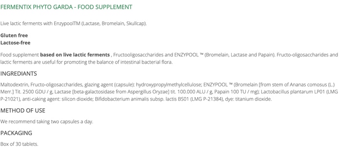 Phyto Garda Fermentix Live Lactic Ferments — это высококачественный продукт, содержащий живые лактобактерии, который поддерживает здоровье пищеварительной системы. В каждой упаковке содержится 30 капсул, которые обеспечивают организм необходимыми пробиотиками.
