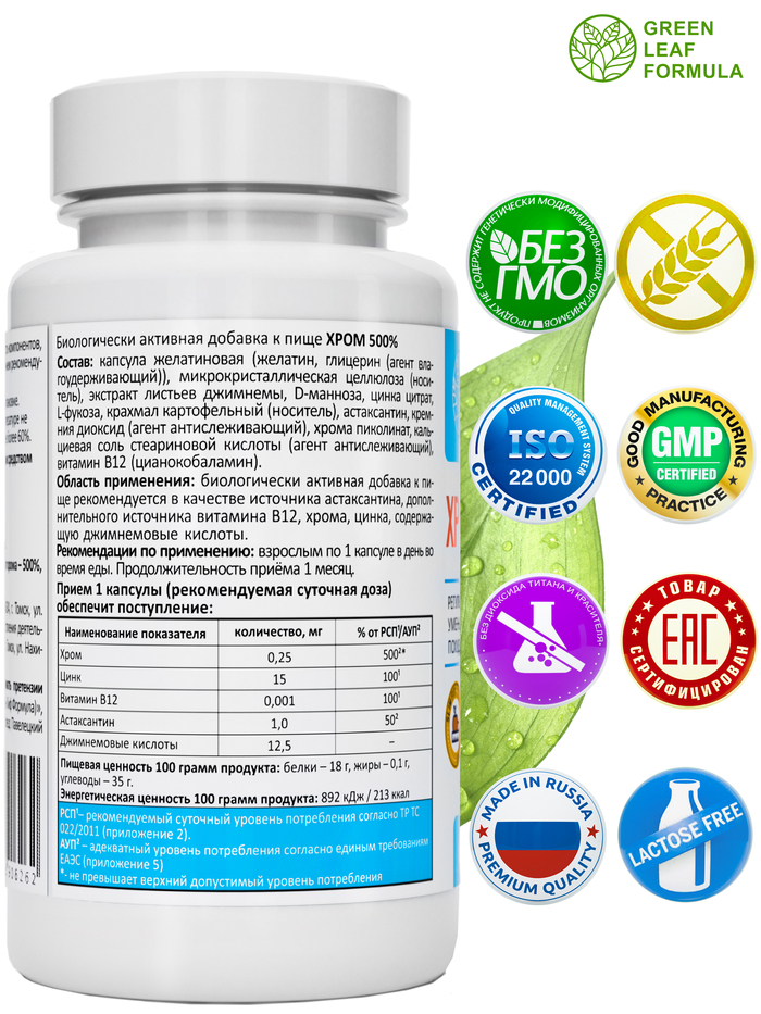 Пиколинат хрома от бренда GREEN LEAF FORMULA — это высококачественная добавка, содержащая 250 мг хрома в каждой капсуле. В упаковке находится 30 капсул, которые помогут вам поддерживать оптимальный уровень сахара в крови и способствовать снижению веса.