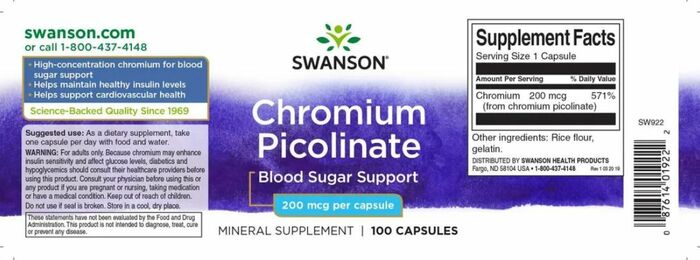 Пиколинат хрома Swanson - отличный способ метаболизировать углеводы и липиды. Это важное питательное вещество играет ключевую роль в снижении веса и поддержании здоровья сердечно-сосудистой системы.
