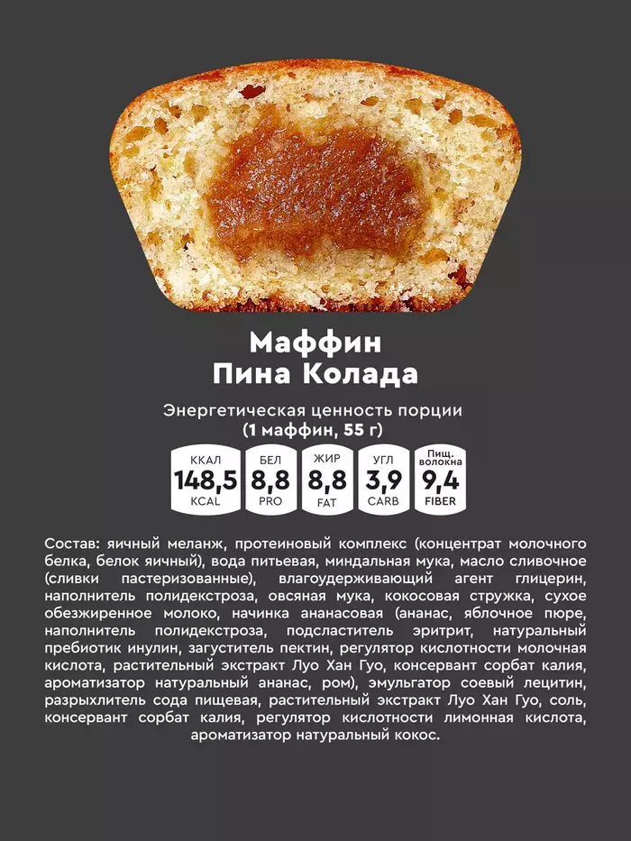 Mr. Djemius Протеиновые маффины Zero Muffin Rocky Пина-Колада, 55 г