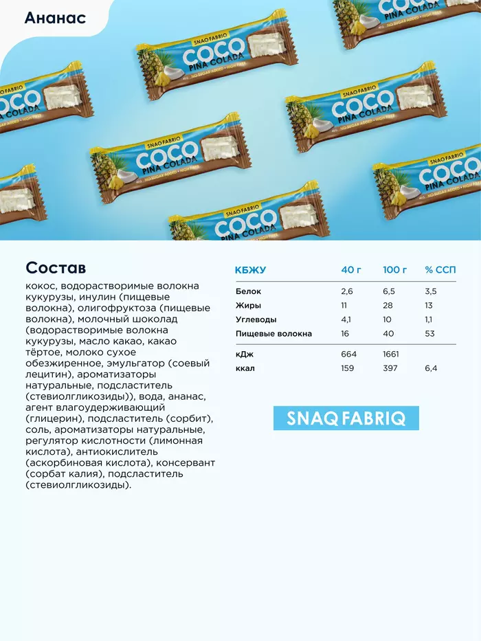 Snaq Fabriq Батончик глазированный Пина Колада, 40 г