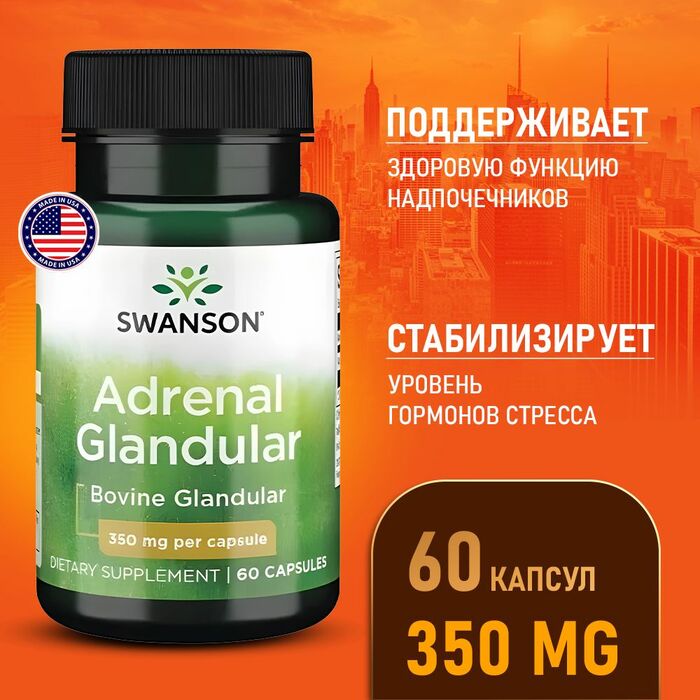 Надпочечники от Swanson Health Products могут поддерживать работу наших собственных надпочечников. Железистые добавки бренда Swanson производятся только из обработанной холодным способом железистой ткани крупного рогатого скота, собранной на предприятиях, прошедших проверку Министерством сельского хозяйства США. Эта высококачественная ткань высушивается, обезжиривается (если возможно) и измельчается в порошок в лабораториях, имеющих сертификат cGMP в Небраске.