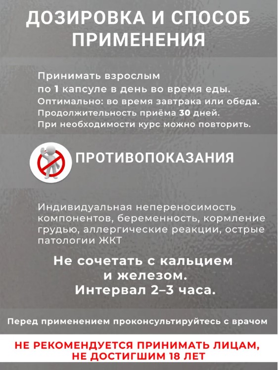 Таблетки легко проглатываются и подходят для ежедневного приема. Рекомендуется использовать добавку в периоды повышенных физических и умственных нагрузок, а также при несбалансированном питании.