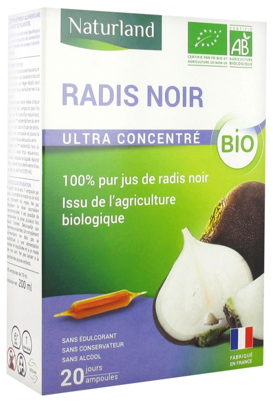 Питьевая пищевая добавка Naturland "Черная редька" органическая — это натуральный продукт, который поможет поддержать ваше здоровье. В каждой упаковке содержится 20 ампул по 10 мл, что делает его удобным для использования в любое время.