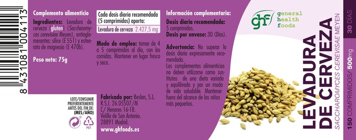 GHF Пивные дрожжи с содержанием 500 мг, GHF, 150 таблеток