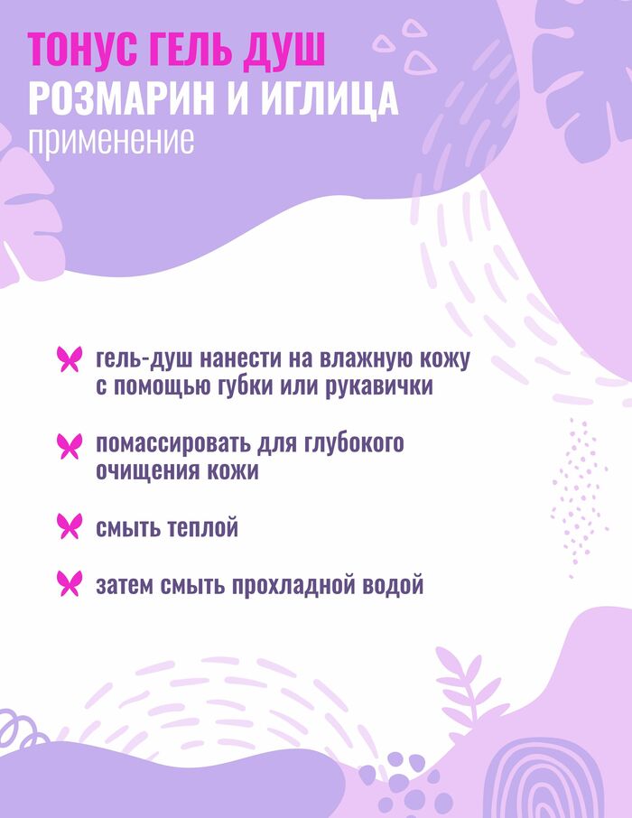 • Расслабляющий эффект: уход с экстрактом розмарина помогает снять напряжение и улучшить общее самочувствие после душа.