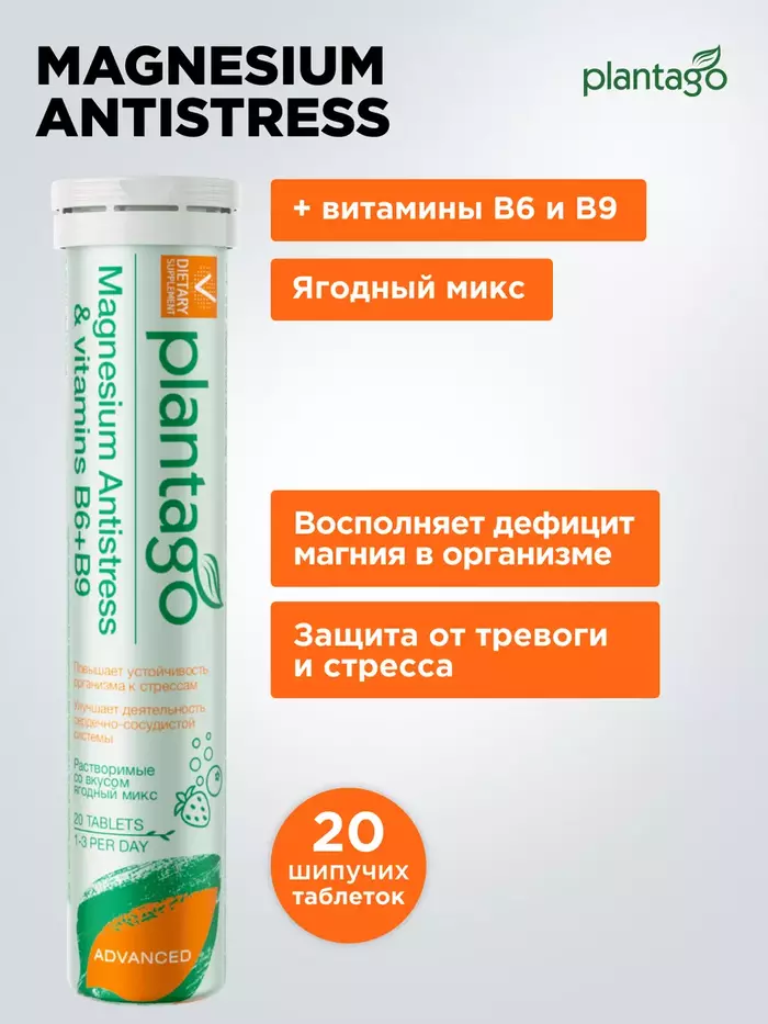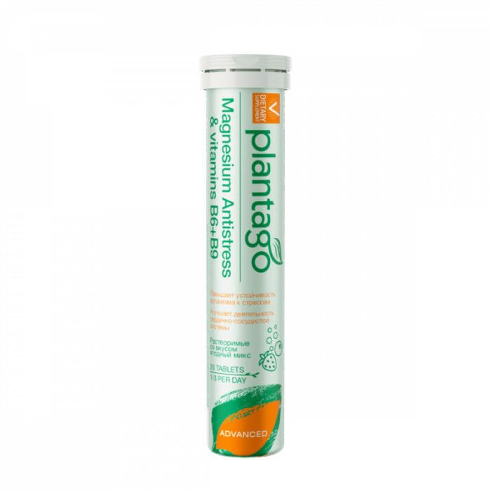 PLANTAGO Магний Антистресс с витаминами B6, B1, B9, 20 шипучих табл
