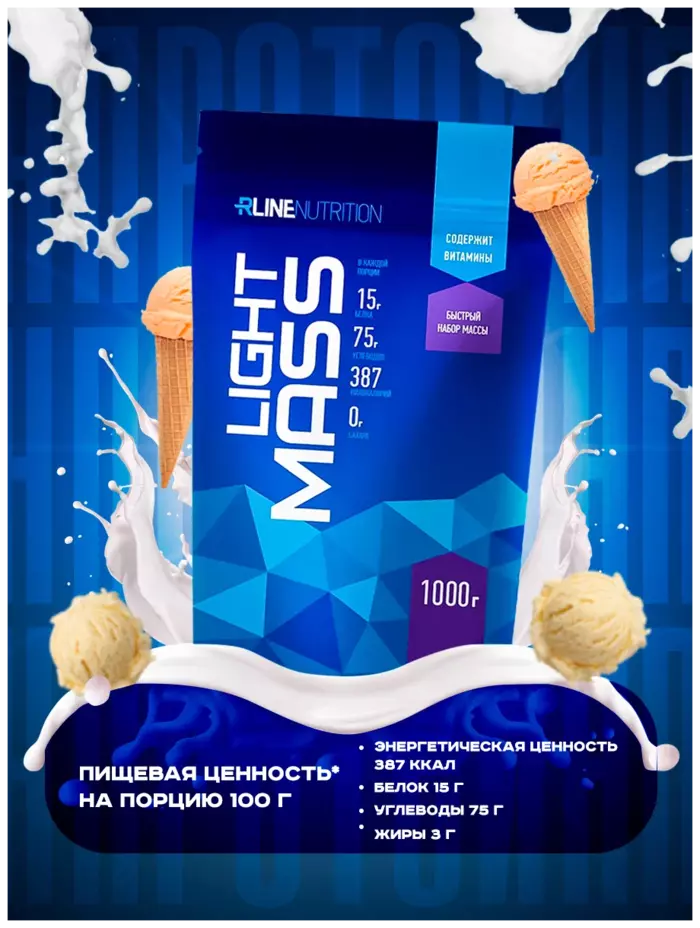 R-LINE Гейнер Light Mass Пломбир, 1000 г