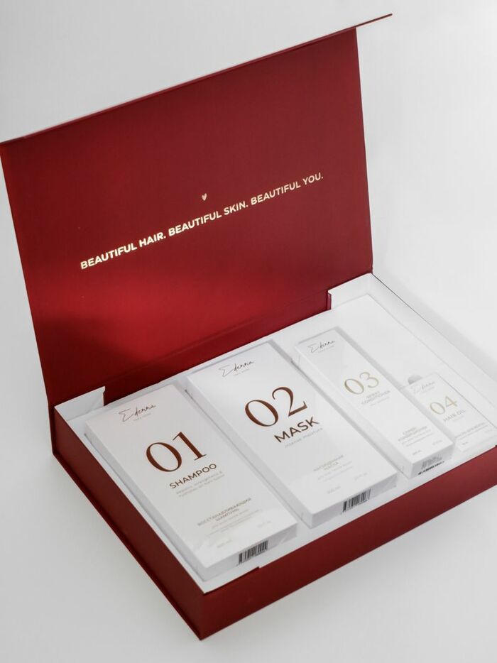 Red Big Подарочный набор 4 в 1 от бренда Ederra — это идеальное решение для ухода за волосами. В набор входят восстанавливающий шампунь и другие средства, которые помогут вашим волосам выглядеть здоровыми и ухоженными.