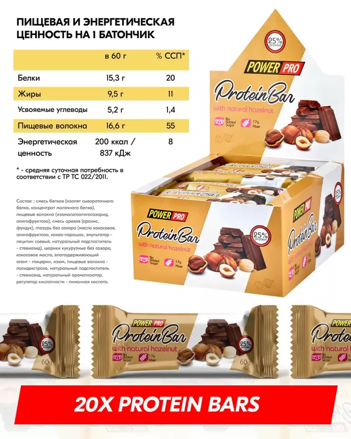 PowerPro Батончик глазированный Миндаль, 60 г, 20 шт в упаковке до 07.03.25