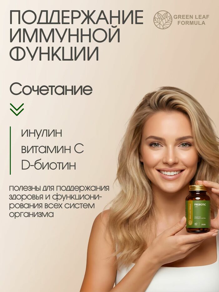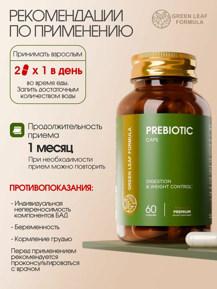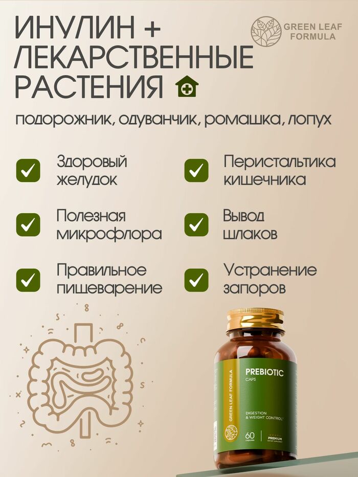 GREEN LEAF FORMULA Пребиотик для пищеварения и контроля веса, 60 капсул