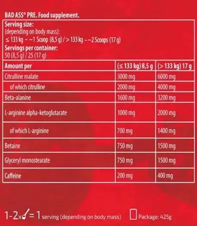 Предтренировочный комплекс Pre Фруктовый от бренда BAD ASS — это мощный помощник для достижения ваших фитнес-целей. В каждой упаковке содержится 425 г высококачественного порошка, который обеспечит вас необходимыми ингредиентами для эффективной тренировки.