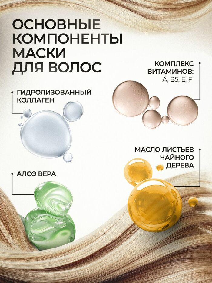 • Восстановление волос: Специальные компоненты в составе помогают восстановить поврежденные волосы, придавая им здоровье и блеск.
