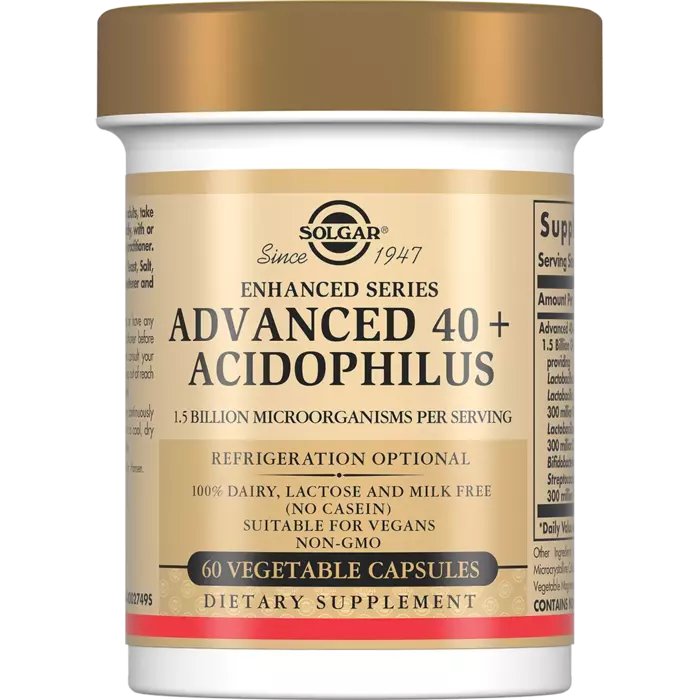 Пробиотики Solgar Acidophilus 40 Plus Advanced содержат 40 миллиардов активных пробиотических клеток на порцию, что делает их эффективными для поддержания здоровья. Продукт подходит для вегетарианцев и не содержит искусственных добавок.
