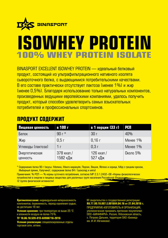 Binasport Протеин Excellant Isowhey Малина, 33 гр