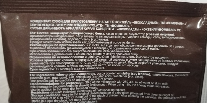 Протеиновый коктейль (порционный) Шоколад от бренда Bombbar — это отличный способ быстро и вкусно восполнить запасы белка в организме. В каждой порции содержится 30 граммов высококачественного протеина, который идеально подходит для активных людей и спортсменов.
