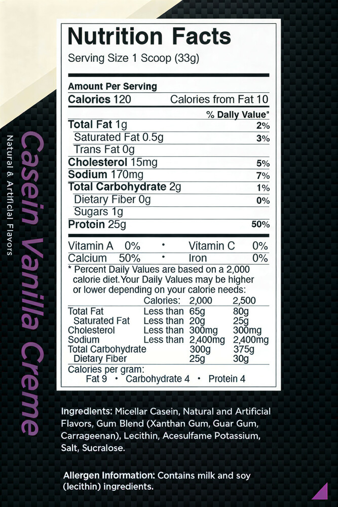 • Долгое усвоение: Казеин медленно усваивается, обеспечивая длительное поступление аминокислот в организм, что способствует восстановлению мышц.