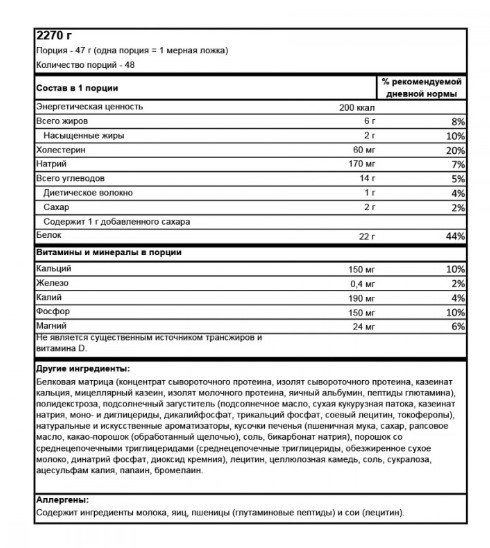 • Поддержка мышечного роста: Высокое содержание белка способствует наращиванию мышечной массы и восстановлению после интенсивных тренировок.