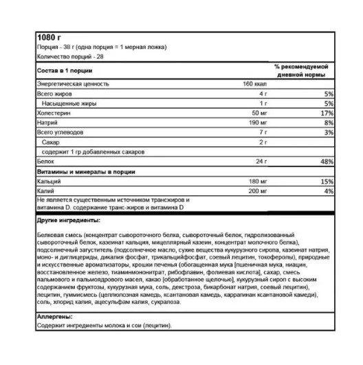 • Отличный вкус: Протеин имеет насыщенный вкус печенья-крема, что делает его приятным дополнением к вашему рациону.