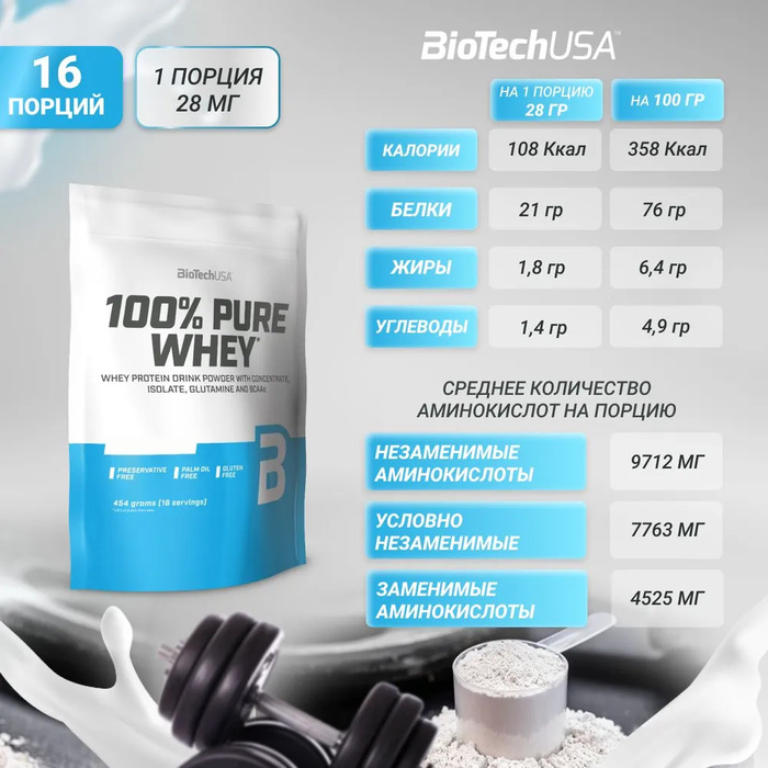 Протеин сывороточный Pure Whey Шоколад от бренда BioTech — это высококачественный источник белка, который идеально подходит для спортсменов и активных людей. В каждой упаковке содержится 454 грамма продукта, который поможет вам достичь ваших фитнес-целей.