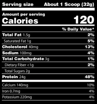 • Высокое содержание белка: Каждая порция содержит 24 грамма сывороточного белка, что способствует росту и восстановлению мышечной массы.