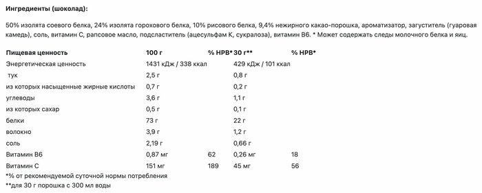 • Отсутствие лактозы: Протеин не содержит лактозы, что позволяет использовать его людям с непереносимостью молочных продуктов.