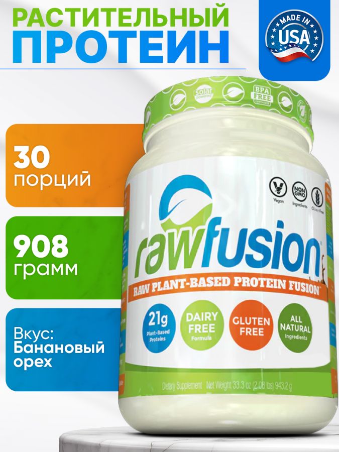 Протеин веганский SAN Raw Fusion банан-орех — это отличный выбор для тех, кто ищет растительный источник белка. В каждой упаковке содержится 900 граммов высококачественного протеина, который идеально подходит для веганов и вегетарианцев.