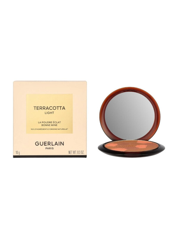 Пудра GUERLAIN Terracotta Light придаст вашей коже естественную свежесть и изысканное сияние. Благодаря её лёгкой текстуре и содержанию 96% натуральных ингредиентов, она мягко тает на коже, освещая её жизнерадостными оттенками. Обогащённая марокканским цветочным мёдом, пудра обеспечивает длительное увлажнение. Доступна в трёх тонах для любого типа кожи: бледной, средней и смуглой, с розовыми и золотистыми подтонами. Наслаждайтесь сияющим и загорелым видом круглый год.